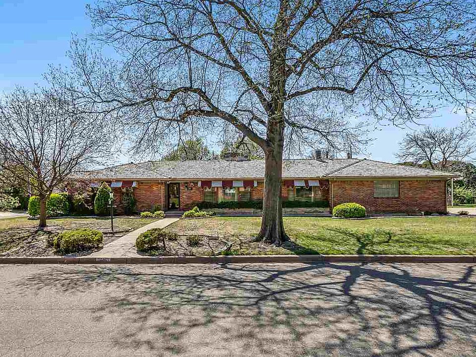 This one owner sprawling full brick ranch sits on a large corner lot in The Village that displays mature trees, new awnings, oversized 2 car side load garage & a large storage shed. A wood foyer welcomes you into the home. The large living room is flanked to the right of the foyer and boasts a fireplace and adjoining sizable dining room. The heart of the home boasts a spacious family room with a beautiful stone fireplace, silver closet, wood flooring, wet bar & a large door to the pergola covered patio. The easy flowing kitchen is great for the cook in your home with plenty of work space, multitudes of cabinets & a large eating space. The master suite features double closets and a private bath with a walk-in tile shower. 2 additional bedrooms, granite hall bathroom, office, huge laundry room & a powder bath for guests complete the main level. Note that all the bedrooms, living room, dining room and hallway have wood flooring underneath. This home has been cherished for decades!