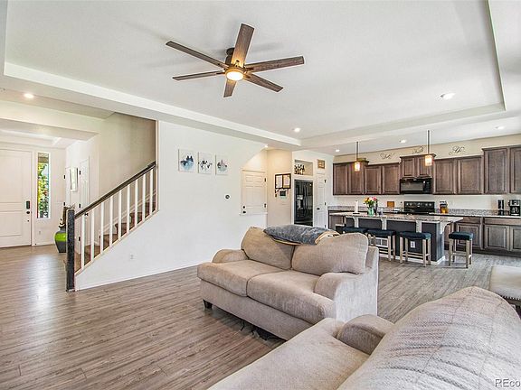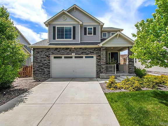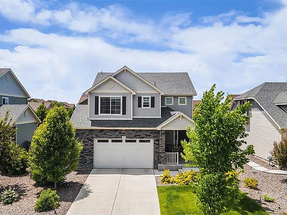 Welcome home to this gorgeous 4 bedroom 4 bathroom 2-story home situated on a premium homesite! The main level hosts a chefs' style kitchen with granite countertops and eat in island, that overlooks the dining and great room. New LVP flooring covers the main level and the additional clearstory windows provides an abundant of natural light! Step out to your back yard oasis that features a pergola, large patio, private fencing and storage shed. Upstairs you will find your owners' suite equipped with en-suite spa style bathroom with upgraded granite countertops, tile, cabinets, and features a huge walk in closet. There are an additional 2 bedrooms, full upgraded guest bathroom and laundry room conveniently located near the bedrooms. Head down to the finished basement and enjoy the family room that's great for a theater room, 4th bedroom and a full guest bathroom. The garage is an enlarges 2.5 car to ensure you can store your toys! The home is steps away from a pocket parks. Easy access to E-470, Denver International Airport, Downtown Denver and DTC.