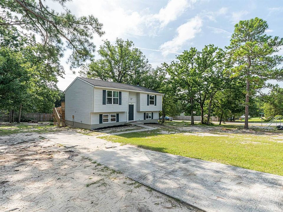 Adorably retro, yet modern split level home in the heart of Wrenwood, one of Lexington's most established and secluded community's offering spacious lots, HOA free living and easy access to all the Midlands has to offer. Upon entry you are greeted by a catch all area with shiplap accent wall, gray washed LVP flooring that flows throughout your open concept living, dining area and kitchen offering whitewashed stained cabinets, ample counter space, views into your backyard and all of the essential appliances that make this dream home MOVE IN READY! Two spacious bedrooms on the main level including the master offering double the closet space and a shared bathroom. Downstairs, two additional spacious bedrooms with shared bathroom, bonus den with wood burning fire place and your laundry room large enough to make the every day "fluff and fold" fun again! Enjoy a double sized corner lot with finished storage shed turned "tiny home" with upgraded carpet, window unit and power, newly built back deck off of the second floor leading down to your back yard oasis -perfect for entertaining!! Zoned for award winning Lexington One School District