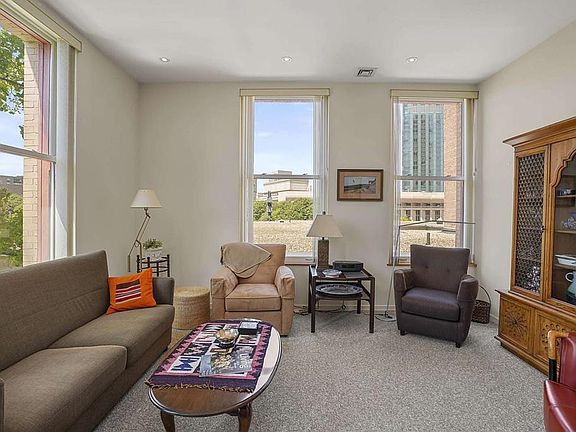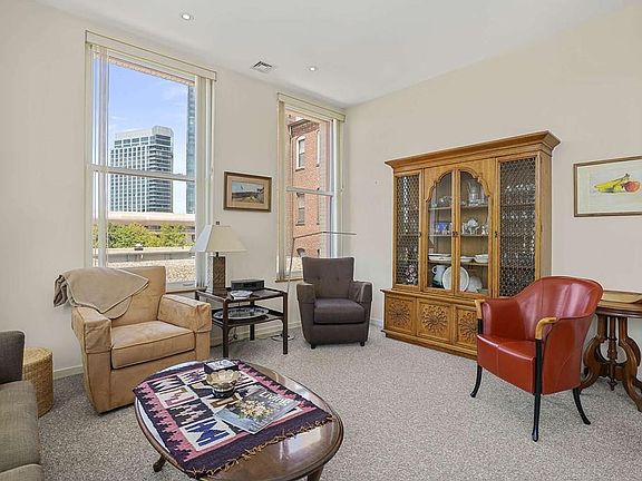 Rare three bedroom two bath condominium in a converted school house in the South End. This 1180 sq. ft. corner unit in an elevator building features high ceilings, over-sized windows, hardwood floors, loads of closet and storage space, and one outdoor deeded parking space. There is a separate dining area off of the step up living room. The galley kitchen includes electric stove, refrigerator, dishwasher, microwave, and disposal and has cherry cabinets and granite counters. The master bath has a walk in shower and the guest bath has tub with enclosed shower. In unit washer/dryer.