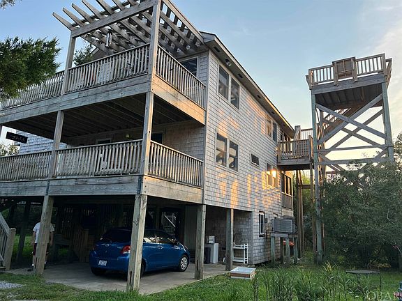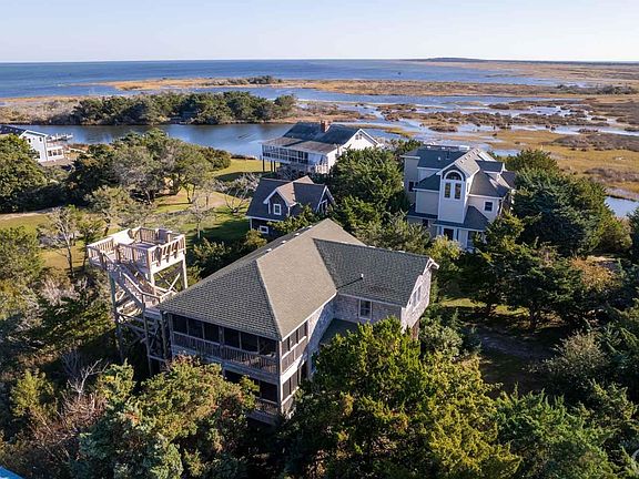 This beautiful custom built home is just one house down from the end of a dead-end road with a foot path to canal connecting to Pamlico Sound providing kayak, SUP or john boat access to all residents of Sarah Ellen. Artfully designed, the reverse floor plan offers privacy and excellent natural lighting. Multi level decks and screened porches capitalize on the tranquil setting. A roof top deck with built in seating offers panoramic views from sound to ocean. The first floor has 2 bedrooms and a full bath, washer dryer, an office/study/bonus room and a large room with its own exterior door access which could be used as an additional bedroom (septic system can accommodate up to 4 bedrooms). The second floor has an open floor plan and cathedral ceilings with a spacious kitchen open to a dining and living area and a 1/2 bath. Also on this floor is master bedroom with its own en suite custom tiled bath. A large, full house length 2 level screened porch runs along the back of the house, two level open decks adorn the front. On the north side the large roof top deck boasts spectacular views and sunsets. This home is currently seller's primary residence but could easily become a spectacular vacation rental providing supplemental income.