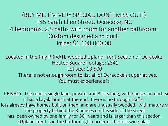 GORGEOUS OLD SCHOOL-type Outer Banks home. Custom designed and built by the best builders, all permits, plans, inspections available. High end. In a 2 square mile village 24 miles at sea, off of the NC coastline. IT HAS THE BEST AND MOST DIVERSE VIEWS ON THE ISLAND. It has 4 bedroom, with bonus room with a full porch. Beach Rental, residence or mixed use: Many opportunities for income. On Ocracoke, NC, which has been the #1 beach in The United States of America for 2022 and 2007. When you hit #1, you are off the list for 10 years. This house and section are the best, smallest, most wooded and private spot left on the island. It cannot be expanded or built around. SEE THE PHOTOS FOR THE FULL INFO AND PHOTO PACKAGE.