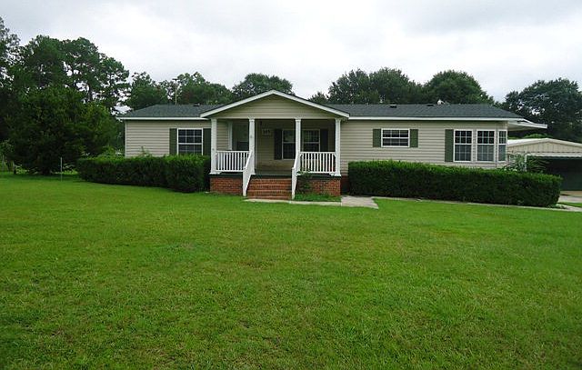 Excellent condition mobile home with a permanent foundation, architectural shingles, double detached garage, covered back porch, rocking chair front porch and convenient to restaurants, shopping, home depot, lowes, and other amenities in Moultrie, GA.