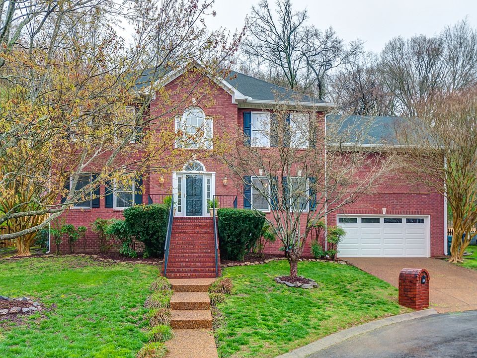 This wonderful 4 Bd, 3.5 Ba, 3,070 sqft brick traditional sits on a private and quiet cul-de-sac. Soaring 2 story foyer greets you, hardwood floors throughout, stainless steel appliances, eat-in kitchen, fenced/wooded back yard w/great patio for entertaining. Main floor bedroom suite is perfect for multi-generational use. Huge bonus upstairs. 2 car garage. Minutes from I-40, walk to Loveless Café.