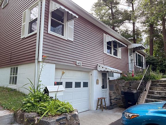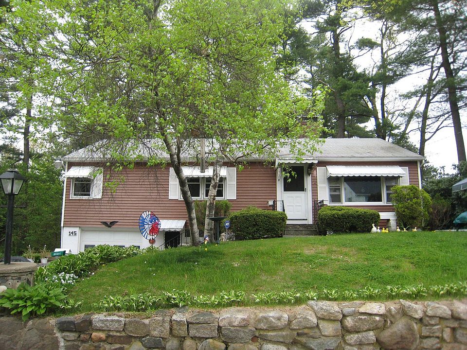 This 1400+ home is five minutes from downtown, highways, shopping, Pease etc. Private .38 acre lot with some fencing, abuts Panaway Neighborhood Park area. Center Chimney with three flues offers gas fireplace (bottles gas), wood burning in lower level family room and furnace. Built in bookcase around fireplace in living accented by Hardwood floors. Newer kitchen, granite counters overlooks backyard thru Three season Sunroom .Basement has separate heat zone, 3/4 bath, laundry area, oversized garage and work area too! Plenty of outside parking.