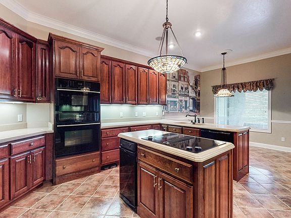 Carefully designed architecture in this custom built brick home with a great floor plan that features 4 bedrooms, 3 baths situated on 5 well manicured acres in Country Wood. The living room features a fireplace with gas logs, built in shelving & a tray ceiling along with lovely hardwood flooring, which is also throughout the main living areas. The spacious kitchen & breakfast area have tile flooring, beautiful cabinetry & Corian countertops The private master bedroom features a double sided fireplace & a tray ceiling along with doors that lead to the covered back porch. The split bedroom plan features another private bedroom suite with it's own bath plus 2 other bedrooms sharing a bath.