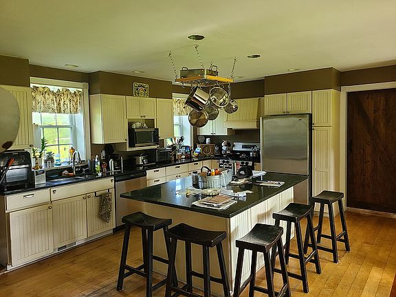 Beautiful New England Farmhouse with vaulted ceilings and stone fireplaces. House has been renovated throughout inside and features a master bathroom with jet tub, big kitchen with breakfast counter big dining room. New since 2019: High Efficiency Propane Gas Furnace, We'll Pump, Sliding Door out rear of home, and completely new Septic System. Beautiful lot of land with wild blueberry bushes, apple trees and raspberries. Property also features large pole barn, perfect for storage. Title V Certificate in hand!