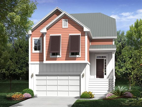 The Summerlin is an amazing beach style home with a very spacious social area. Metal roof and Bahama shutters continue the "Raised Beach" look and feel - this home has the daily living areas on the main floor including laundry room and a very open kitchen/family/dining area designed to cater directly to the modern social lifestyle. The spacious gourmet kitchen features a large central island with solid quartz countertops, stainless steel Whirlpool appliances featuring a gas stove and counter depth refrigerator. Enjoy breakfast overlooking your fully sodded and irrigated backyard from your main floor porch balcony. Beautiful 9ft. ceilings on both floors are accented with a trey ceiling in the living room and owner's bedroom. On the same level with the kitchen/family/dining area is the owners suite and bath featuring a luxury tiled shower, a generous walk-in closet and private water closet. The Summerlin offers 2 covered porches - one off the family room and one on the ground floor off the game room. The secondary living areas (2 bedrooms/bath/and game room) are on the ground floor along with the 2 car garage. This arrangement is perfect for the kids or guests to have their own space.