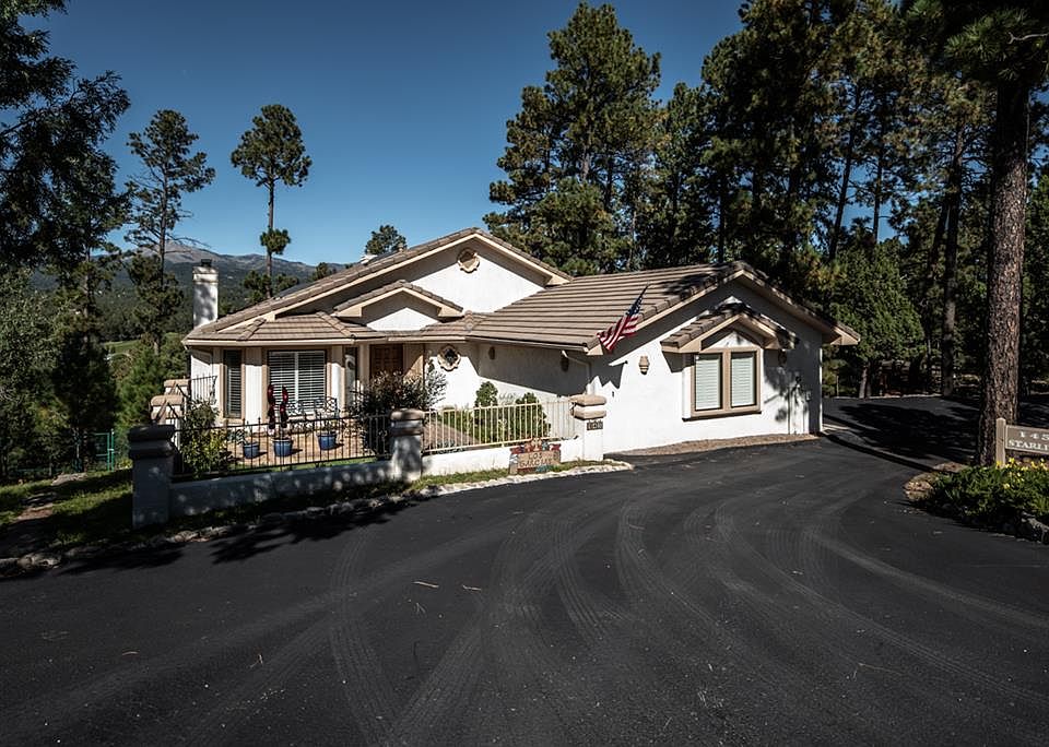 THIS HOME BOASTS ONE OF THE BEST VIEWS IN RUIDOSO! PERCHED ON A PRIVATE & SECLUDED STREET TO STREET LOT. VIEWS TAKE IN SIERRA BLANCA, VILLAGE & GOLF COURSE. LOW MAINTENANCE STUCCO EXTERIOR W/ CONCRETE TILE ROOF. MAIN LEVEL FEATURES A WALL OF WINDOWS IN THE LARGE GREAT ROOM W/ FIREPLACE, OPEN KITCHEN & MASTER SUITE WITH HIS & HERS BATHROOM. ENTERTAIN ON SPACIOUS COVERED DECK. DOWN STAIRS FIND GUEST ROOMS AS WELL AS A HUGE HEATED WORKSHOP. NEW FURNACE & A/C INSTALLED IN 2019. DOUBLE ATTACHED PLUS TRIPLE DETACHED GARAGES. MINOR COSMETIC UPDATING WILL MAKE THIS HOME A SHOWPLACE! GREAT FOR FULL/ PART TIME LIVING. WOULD ALSO MAKE A TERRIFIC NIGHTLY RENTAL. BEING SOLD FULLY FURNISHED.