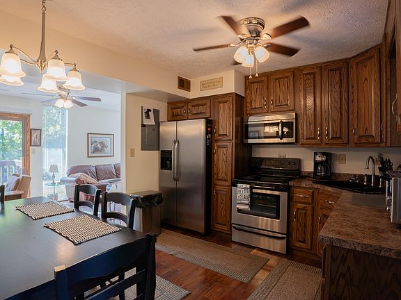 Welcome to Apple Valley Resort located just minutes from Lake Cumberland! This golf cart friendly resort has many amenities including a clubhouse, heated pool, basketball court, playground, bath house, pickleball/tennis court, fish cleaning station, and storage sheds for your boat and lake toys! This particular condo known as ''Q4'' comes with a 12x30 boat shed that is paid for until 9/30/25! Q4 condo has been updated with solid oak cabinets, laminate hardwood, new sink, oak banisters, updated bathrooms, new concrete sidewalk, and comes fully furnished with the exception of a few items. The current owner has it set up for 1 HUGE bedroom upstairs but can be seperated and used as 2 bedrooms. 2 full bathrooms. You CAN airbnb/vrbo these condos. If you want maintenance free with all the amenities, Apple Valley Resort is where you want to be! 4 miles to launch your boat at State Dock!!