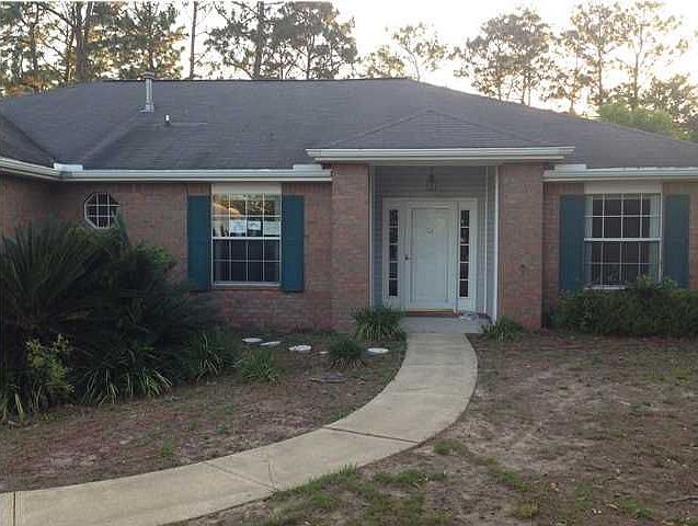 South of Crestview location. Enter this beautiful all brick home to a ceramic tiled foyer. Beautiful fireplace awaits the comfortable living room that has a cathedral ceiling and a drop down ceiling fan. This home has so many features that everyone wants. A eat in kitchen that has a beautiful breakfast nook,large kitchen with central island. A formal dining room with arched entry way is available or you can use the area as an office. Split bedroom design. Masterbedroom is large enough for any bedroom set. Master bath is large and has a double vanity, separate water closet, and tub/shower combination. Best of all this home offers a heated, in-ground pool. Easy access to the bases, shopping, and the hospital.