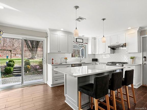 A home filled with love, light and 2592 square feet of wonderful living space, situated on a quiet cul-de-sac! So much thought went into every update. Exterior & interior received modern, bright renovations with quality and comfort in mind. Remodeled open concept Kitchen with oversized island & quartz counters. Living Room features wood burning fireplace insert. Master Suite with huge walk in closet & built-in shelving, Full Bath with radiant heated floors & glass door shower. 2nd Bedroom with 2 large closets can easily be converted into 2 Bedrooms (see floor plan). Newly renovated Hall Bath. Lower Level doubles the living space. A beautiful Bedroom with walk in closet is perfect for an in-law suite or home office. Full Bath, play area, media area, Gas Fireplace & workout area complete this space. Attached 2 car garage with ample storage. Large yard, landscaping & patio complete this fabulous home. Conveniently located near the Merritt, shopping, restaurants and farms. This home is the one youve been waiting for!