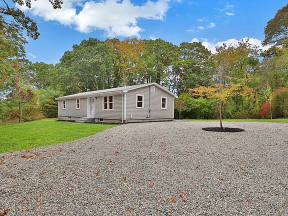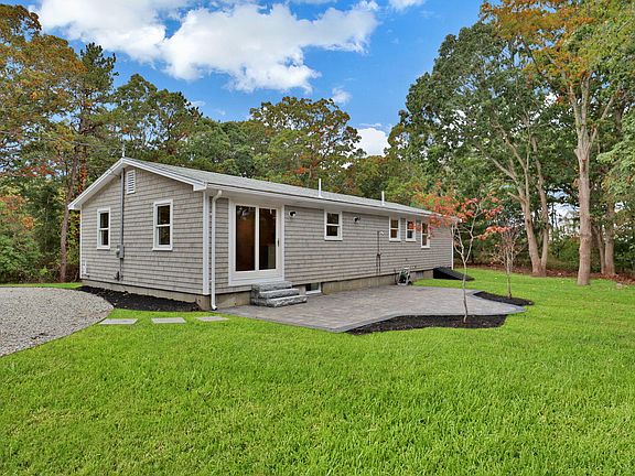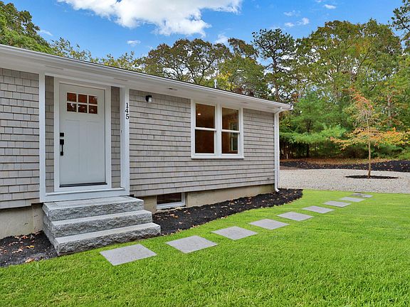 Stunning, state-of-the-art renovation just completed at this cozy Brewster hideaway located just off of scenic Route 6A. All new Andersen windows and recessed lighting throughout illuminate the well-appointed open concept kitchen and living space which is complete with a center island, quartz countertops, and tile backsplash. Gleaming hardwood floors and custom tile work throughout the home compliment the contemporary and neutral design palette. An en-suite primary bedroom, two guest bedrooms, and an additional first floor full bathroom with laundry allow for comfortable, single-floor living. Outside there is additional entertaining space accentuated by granite steps, an expansive patio, all new shingle siding, an outdoor shower, and a seeded lawn area. A large, crushed stone circular driveway with cobblestone apron creates a polished curb appeal, and the multiple garden beds offer further potential to customize the landscape. Additional features such as central A/C, potential basement expansion, and plenty of guest parking coupled with a sought-after Brewster location make this property ideal for an investment, summer getaway, or year-round Cape haven.
