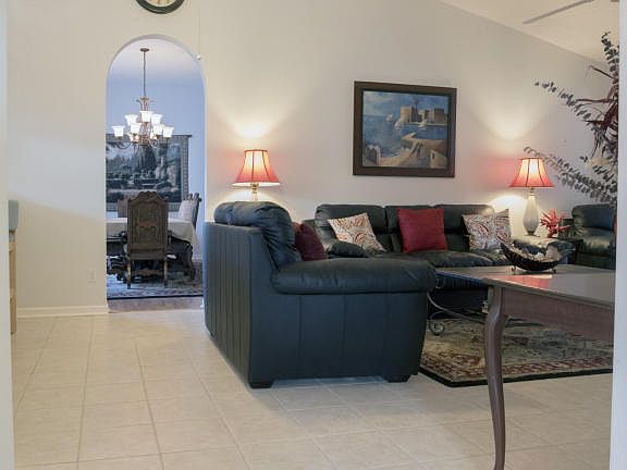 Walk to the beach from this West end beauty with 3 bedrooms and 3 full baths! Living, dining, and family rooms. Prime location just around the corner from beach access #93, and 10 minutes to Pier Park or 30A. Vaulted 23 X 14 living room is tiled, with a niche, plant ledge, and arched entrance into 17 X 13 formal dining room with an elevated ceiling. Second 18 X 14 family living area. Oversized master bedroom with walk-in closet, soaking tub, separate shower, private WC, linen closet and 8' vanity with double bowl sinks. Second master bedroom has a private bath and walk in closet. Double french entry doors into the third bedroom which shares dual access to the hall full bath. The vaulted kitchen has a large double window, pantry, breakfast bar, and all appliances including newer Kenmore s/s