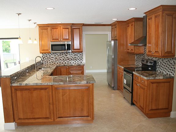 Complete remodel has been done to this house Feburary of 2014 from attic insulation to 20"x20" porcelin flooring. New custom Kitchen with granite countertops . New bathrooms with maple vanities and granite tops. Popcorn ceilings were removed and knock down texture was applied. New crown molding and large 5 1/4" baseboards were installed. New french doors leading to pool patio area. Total professional paint inside and out. New sod and sprinkler system. Nothing was left out. This is a "like new" home. Beautiful pool and great outdoor space on a navigatable canal in a quiet community with NO HOA!! Walk to HL Johnson school. All underground utilities.