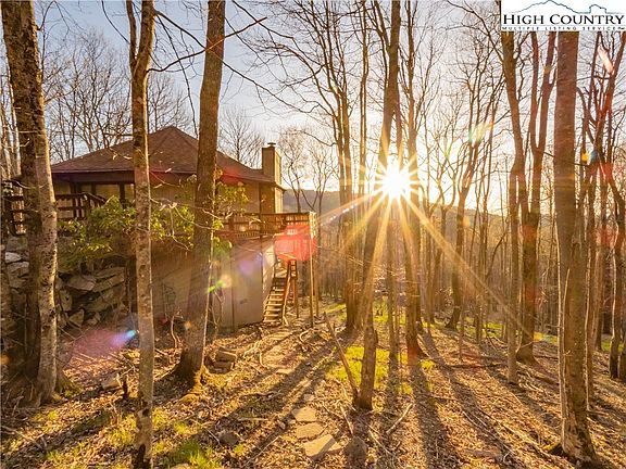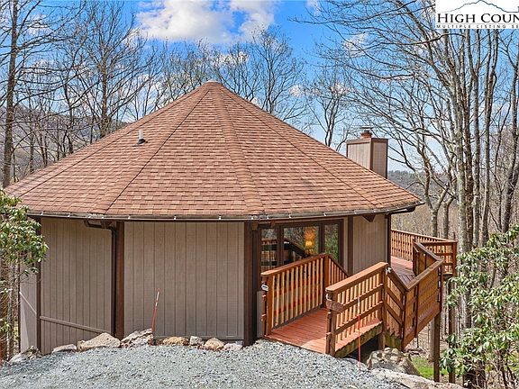 Welcome to "AIRIE CHALET", a uniquely SPACIOUS round home w/ TONS of WINDOWs & perched high at 4650’ ! TURN KEY RENTAL PROPERTY & BOASTING spectacular LONG RANGE + Mountain Views - must be seen to be appreciated! Enjoy the views from the 2 rear decks as well as sitting around the wood burning stone fireplace in the family room. An add'l 285 sq ft of LIVING AREA not included due to ceiling height (loft bedroom). Featuring 4 BEDROOMS & 3 FULL BATHS w/many updates & the ample parking & level entry are ideal for entertaining. NEW rustic LVP flooring & hickory staircases showcase the main living area which has 2 BEDROOMS furnished w/ new King beds + 2 full baths. The kitchen has a new farmhouse table accommodating 10 comfortably & stainless appliances. The LOFT BEDROOM is furnished w/ queen & full beds & the lower level has an add'l bedroom also furnished w/ a NEW king bed, full bath, laundry room PLUS 2ND FAMILY ROOM w/gaming table console & games. Both family rooms have 65" T.V.'s and the bedrooms have USB ports and lights at every bedside. Seller is a "Super host" on Airbnb w/5 star reviews and has EXCELLENT RENTAL HISTORY! Beech Mountain Club eligible. See attached list of upgrades!