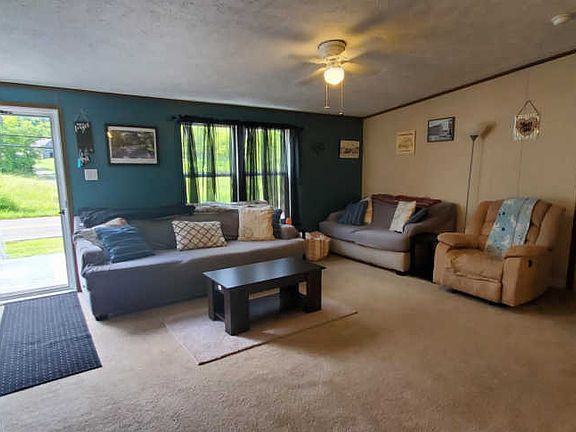 Nearly new home with open floor plan, 4 bedrooms including large master suite, plus 2 full baths. Spacious island kitchen with bar top, appliance including range, dishwasher, & refrigerator remain. Large dining area presently used as a combined office area. Separate laundry room with extra storage space. New deck built in back overlooks very private yard with tree-lined boundary. Plenty of parking in front. This home has been placed on a permanent foundation, with a nice stairway & and entry deck. Connected to public sewer. Why go to the expense & trouble with finding a lot, purchasing a home, moving & setting up, when you can have this one already complete? Ready to move in!