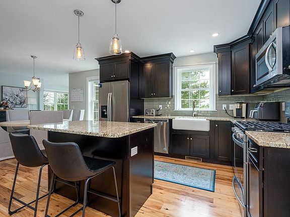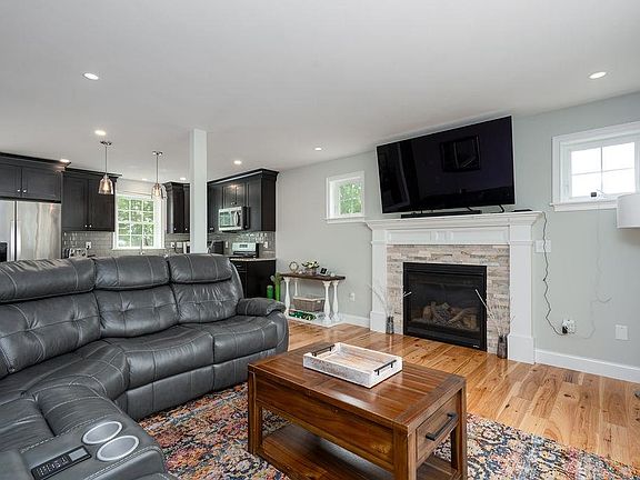 This nearly new Cape provides unique, upscale features & layout, combining comfort & style! Gorgeous hickory floors adorn the first level and upper hallway. Cheerful kitchen with wine refrigerator on 48" island, stainless appliances, gas stove, granite counters, tiled backsplash, a farmers sink overlooking beautiful mountain views, adjoining expansive dining area. Open concept living rooms includes recessed lights and propane fireplace with decorative tile surround and pine mantle. The tiled 4-season sunroom exuded natural sunlight and leads directly to a composite deck overlooking a fenced backyard. An office, half bath, and spacious laundry closet complete the first floor. Upstairs you will find an oversized primary bedroom suite with private bath and walk-in-closet, two additional bedrooms, another full bath, and a linen closet. This home is the epitome of classic elegance, with oversized white trim throughout, modern neutral wall colors, brushed nickel doorknobs, cordless cellular window shades, and ample closet space. Upgrades include central AC, an inline humidifier, and mudroom and second office in the partially finished walkout basement, leading to a small, backyard patio. 2 car garage with additional storage space provides direct access to both the mudroom and the fenced-in-back yard. This lovingly maintained home in serene neighborhood close to Rt 13, MA border & 101 is move-in ready! Quick close possible. Open House Friday 7/12 4-6 pm & Saturday 7/13 10am-Noon.