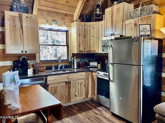 INVESTMENT OPPORTUNITY in the Great Smoky Mountains! This cabin has been a successful vacation rental in Townsend, TN for many years. Newly remodeled kitchen and bathroom, beautiful tile shower, new lvp flooring throughout the main level, and newer gutters. All furnishings convey with the home. This property boasts privacy galore, peace, and relaxation. What more could you want?! The resort offers an in-ground swimming pool and a pavilion for guests to enjoy during their stay. Call today for information and to book your tour of Bear Bottoms!