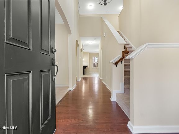 Upstairs, you'll find all four bedrooms, including the luxurious owner's suite with elegant tray ceilings. The ensuite bathroom offers dual sinks, a walk-in shower, and a separate soaking tub for ultimate relaxation.Outside, enjoy a peaceful, secluded backyard with a spacious deck—perfect for entertaining. Additional features include a 2-car garage and a large side yard. Conveniently located just minutes from Union Pines High School and the Pinehurst community, this home offers both comfort and convenience in a sought-after location.