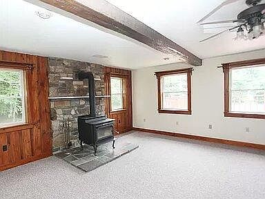 Updated, spacious and quality ranch home, tucked into a very private location on 7.5 acres in foothills of the Catskills. Brand NEW Kitchen, brand NEW berber carpeting in family room and bedrooms, Large (20x30) Family Room addition (2004) has wood beams and woodstove. Separate mudroom/laundry room with tons of storage space. 3 bedrooms, largest with private bath. Above ground pool with wrap around deck. New porches on front and back. 3 outbuildings: Large detached 2 car garage, could be heated, Renters responsible for gas and electric. last month rent due. smoking allowed ,uo to two small pets allowed