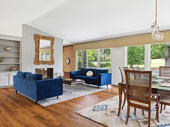 Discover the perfect blend of space, comfort, and lifestyle in this beautifully updated four-bedroom home near Lake Pinehurst. With over 3,000 square feet, the open and airy floor plan is centered around a striking brick facade fireplace that serves as a warm and inviting focal point for the home.