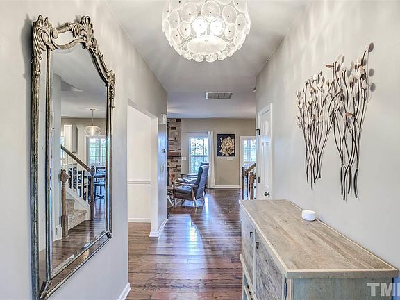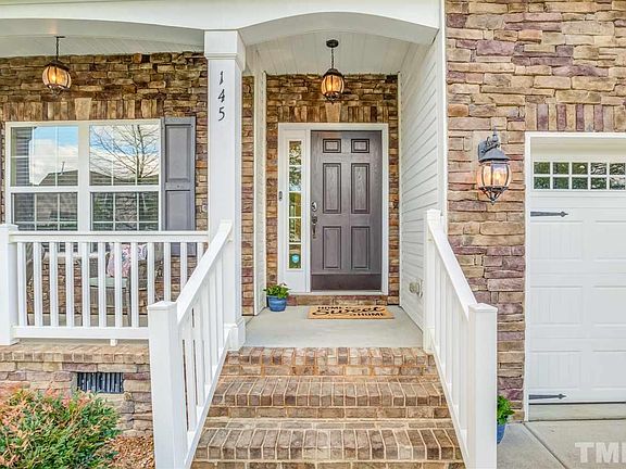 Lovely 5 bedroom, open floor plan home located on a quiet cul-de-sac lot with stone accents on the front. This home features 4 inch hardwood floors on most of the first floor, a covered front porch, private backyard, 3-car garage, screened porch, and a separate deck. Gorgeous landscaping and stone patio, including built-in fire pit, seating, and hot tub. Home also includes a formal living room and formal dining room with chair rail molding and trey ceiling. Family room features a gas log fireplace with granite surround. Breakfast room features sliding door access to the screened porch. The spectacular kitchen is open to the breakfast room and family room and offers custom cream colored cabinets, granite counter tops, stainless steel appliances, contrasting eat-at island, walk-in pantry, and a row of glass front cabinets. One of the five bedrooms is located on the 1st floor with access to full bath across hall. Second floor includes a loft area as well as three bedrooms. The master suite is also located on the second floor and boasts plenty of space for a sitting or exercise area and has a trey ceiling. The awesome master bath features tile floors, separate water closet, separate shower, dual vanities, and a garden tub. Less than a mile from Bryan Road Elementary School and less than two miles from South Garner High School.