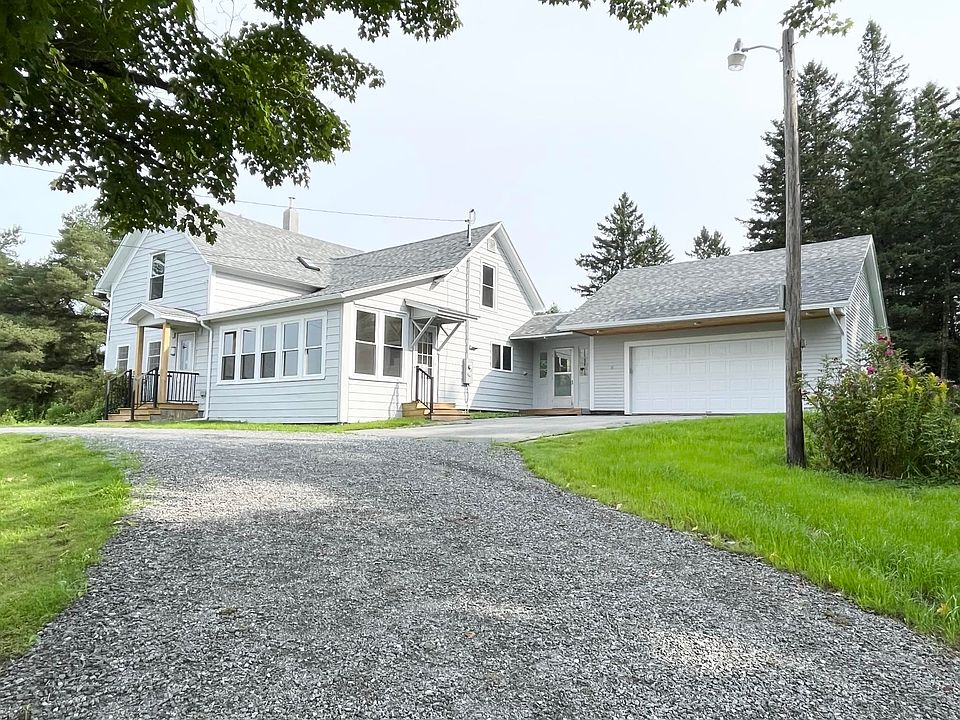 Tastefully remodeled farmhouse situated on a secluded, one acre of land offering tons of privacy. This 3 bedrooms, 1 3/4 home offers plenty of room for your family! The first floor offers a huge, heated entry/mudroom making way to a spacious kitchen/dining area with tile floors, all new appliances, light fixtures, paint and more. Just off of the kitchen is a large enclosed porch or an additional mudroom area with direct access to garage. The living area offers newly finished hardwood floors and the designated laundry room also features a full bath with new fixtures. The second level of the home offers 3 bedrooms w/ new carpets and light fixtures and the primary bedroom offers a 3/4 bath. There is some unfinished space upstairs that could be ideal for more storage should you need it. Additional features/updates include a completely re-painted exterior, 24'x24' attached garage, new roof and much much more! Spacious yard ideal for pets, children or gardening and located just minutes to all town amenities, schools, stores and Interstate 91! This one is well worth a look today.