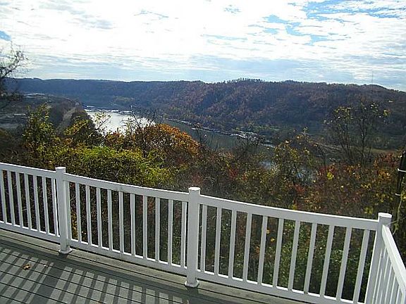 Cute 3 bed 2 bath ranch with an amazing 180 view of Ohio River! Updates include newer kitchen, windows, doors, carpet, & deck. A spacious LIV RM flows into the cheerful eat in kitchen equipped w/abundance of cabinets & included appliances. A sliding glass door leads from the kitchen to the large trek deck with its unobstructed view of the Ohio River. The deck overlooks the mostly flat double lot yard. Downstairs, there is an equally large WO game room & bedroom suite with 2nd bathroom with shower.