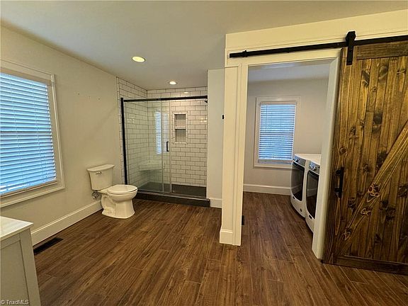Entered for Comp Purposes. In town home completely remodeled. Large primary bedroom and bath with double vanities and walk in shower. Updated kitchen with new cabinets, quartz countertops, stainless steel appliance and updated fixtures. Sunroom and updated hall bath. Freshly painted inside and out with new landscaping. 2023 mini split unit. Heat pump. 2023 roof. Minutes to downtown area, vineyards and wineries, hiking trails and river access nearby. Elkin City Schools.