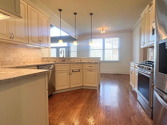 Beautiful 3 bedroom/2.5 bath home with views of #9 on Woodhaven. Kitchen boasts custom cabinets, granite counter-tops, ss appliances, 4 seat bar area, large pantry & opens to the living room with vaulted ceiling, built-ins, gas fireplace & access to the deck. Master features a trey ceiling, double closets & well-appointed bath with tiled walk-in shower, whirlpool tub & dual vanities. Hardwood floors & wide crown molding throughout most of the home. Large bonus room has carpet & access to attic storage. Nice size storage closet in garage.