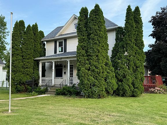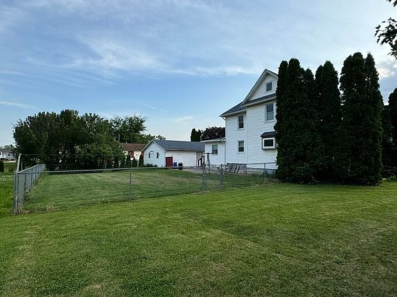 This Two story home with front porch adds extra appeal being on a large corner lot, fenced yard and a 2 car heated garage. Features include entertaining out back on the concrete patio, spacious home with 4 bedrooms, 2 baths, large eat in kitchen with stove, laundry shoot, ceiling fans, living /family room with beautiful wood staircase, central air, GFA heat, water heater, side deck and a flag pole. Roof about 5 years ago. Call today for a showing.