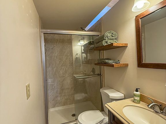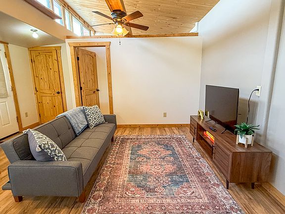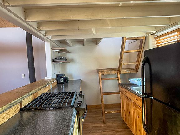 Downtown Mancos Rental next to the river. It's a separate house by bridge to library. One level. One bedroom, one bath with tiled shower, laminate floors, full kitchen, loft for storage or sitting, wood stove, large fenced yard, and a raised vegetable bed. Lots of natural light. Fully furnished and has kitchen pots and pans, dishes, bedding, coffee maker and toaster, and Roku tv. All utilities included plus wifi. One small dog is allowed upon approval with $25 extra a month. Could also be a rental for business. Please submit application prior to scheduling a showing. ONE PERSON ONLY 3 month minimum rental, Fully furnished (all furniture, pots and pans, dishes, bedding, tv) Rent is due by the 1st of each month, 30 day notice required if moving out. $750 refundable security deposit due prior to moving in.