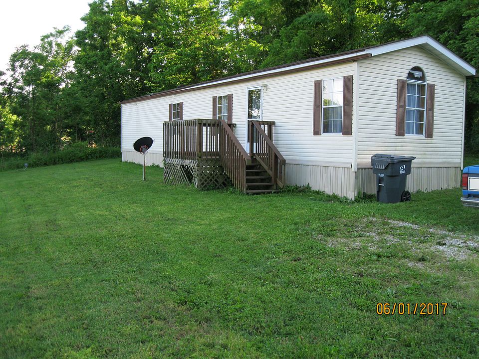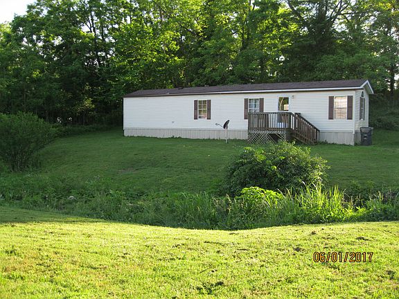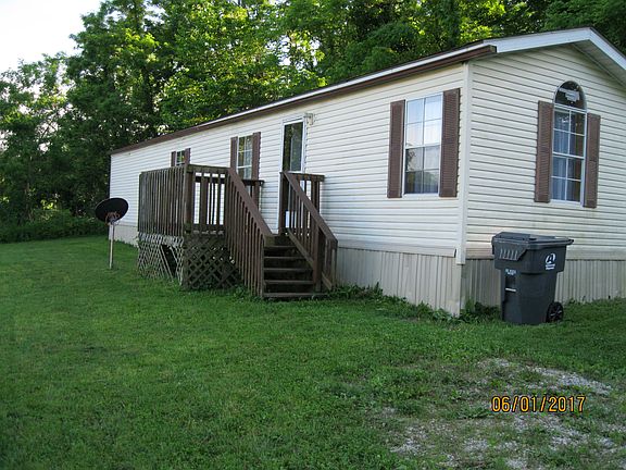 Mobile home with two lots. One of the other lots could have another mobile home put on it if one desired to do so. The interior of the home has two bedrooms and one full bath. The kitchen and the bathroom have a vinyl flooring while the rest have a Pergo flooring. It has central air and a gas furnace; everything else is electric. As for the exterior, it has a cream vinyl siding and a shingle roof. There is a small deck out front. Also, on the edge of the lot there are several walnut trees.