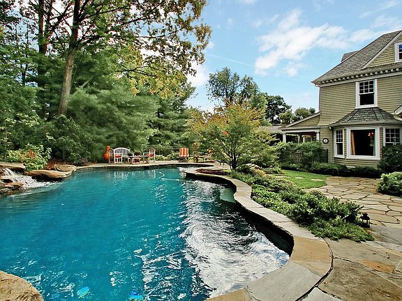 This classic Ridgewood home has been fully renovated for today's buyer Conveniently located with in blocks of NYC trains, schools and the charming downtown. Elegantly set back on over half an acre the property features a professionally designed Gardens and a unique nature-inspired Gunite pool with Waterfall, Bluestone Patios. The Porte-cochere and Grand Wrap-Around Porch only add to the charm of this Quintessential Victorian. The main floor is perfect for entertaining with a large Custom kitchen and family room addition which open to the pool area. Special features include 9 ft. ceilings, hardwood floors, detailed moldings and trim. Large Custom White Kitchen, Oversized Island, Black Granite Counters, stainless steel appliances; Miele DW, Sub-Zero, Dacor dbl ovens and cooktop. Separate eating area flows into a spacious FamRm. Mstr bdrm, WIC, new marble master bath, 5 more Large and bright Bdrms,3 full bths and 2 Half bths. Finished basement, high ceilings for gym/theater.