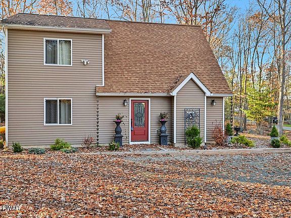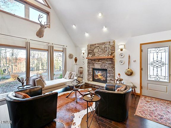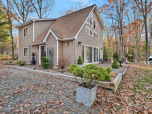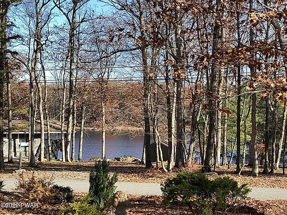 First time on the market! Peace, tranquility & majestic year-round lake views are what you will find at this well-appointed chalet in Sunrise Lakes. Natural sunlight streams through the soaring windows & dances across the hardwood floors. A well-appointed kitchen & spacious open floor with a stone fireplace plan makes this house just perfect for gatherings. Upstairs you will find an open loft with beautiful views of the lake. Outside you will treasure multiple spaces for relaxing and entertaining including a wood-fire BBQ. All of this is nestled on a corner lot with easy access to the lake. This impeccably decorated home is turn-key with most of the high-quality furnishings included. The location is convenient to Lake Wallenpaupack, Milford, I-84, shopping restaurants, NY & NJ., Beds Description: 2+BED 2nd, Beds Description: 1Bed1st, Baths: 1 Bath Level 1, Baths: 1 Bath Level 2, Eating Area: Dining Area