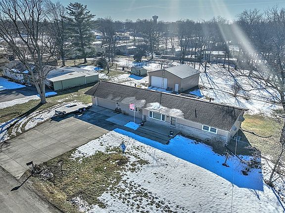 Welcome to this stunning 4-bedroom, 2-bathroom ranch in the highly desirable Mt. Zion School District! Completely move-in ready, this home offers an inviting open-concept layout with a modern kitchen featuring a large island, stainless steel appliances, and a stylish backsplash. The spacious main level boasts replacement windows, beautiful flooring, and a custom barn door leading to a large family room with a cozy vent-free gas fireplace. Hunter Douglas blinds, a whole-house humidifier, and a whole-house fan are bonus features that add to the home's comfort.