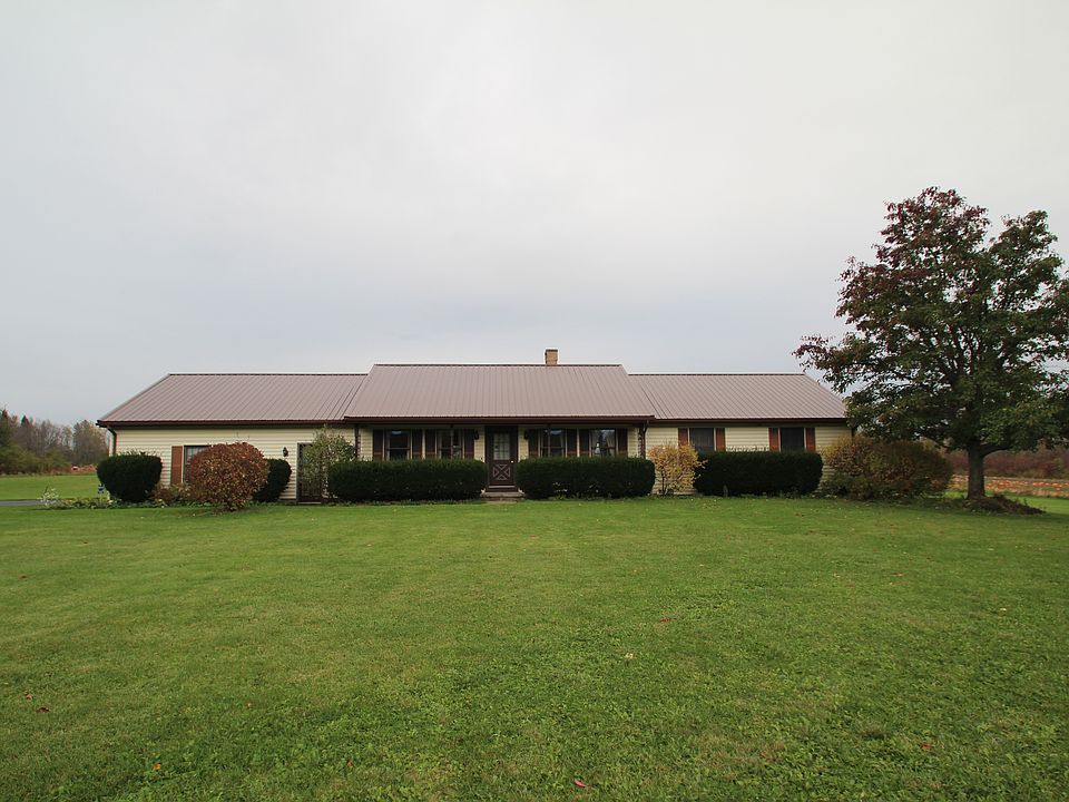 This home is an awesome value and can be purchased and moved into as quick as you can close! Brand new metal roof, heated sunroom and garage! 1st floor laundry & half bath combo. Full walk-in pantry. Low maintenance vinyl exterior with Andersen Perma Shield Thermo windows! The huge garage (3 cars wide) is finished and heated with hot & cold running water. Solid natural gas boiler and hot water tank. 200 Amp circuit breaker panel box too! The home sits back off the road for privacy and has a terrific double wide blacktop driveway with turn around and parking area. The 12 course basement is high & dry and has access from the garage and out to the backyard by a secure Bilco bulkhead door. The bedrooms are larger than average and have lighted closets. Great blinds, some thermal, throughout.
