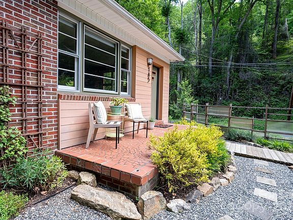 Lovingly maintained, thoughtfully renovated mid-century modern on 1.66 acres with mature gardens and terraced rock retaining walls. Many recent upgrades, including HVAC heat pump and ductwork, plus extensive landscaping, including a fully fenced front yard and cypress wood siding. The reimagined interior includes a chef’s kitchen with granite counters, large island, stainless appliances, and cheery blue cabinetry; two fully remodeled bathrooms; and hardwood floors. Detached 2022 studio/workshop/RV garage with 100-amp electric was designed to be easily converted into a separate living space with income-generating potential. Less than one mile from historic downtown Marshall with its eclectic shops, cafes and restaurants, and the French Broad River! Conveniently located, a scenic 30-minute drive to Asheville; 20 minutes to Hot Springs and Mars Hill. Spot is perfect for a cyclist — ride the popular 25-mile route from Old Marshall Highway and Riverside Drive to downtown Asheville!