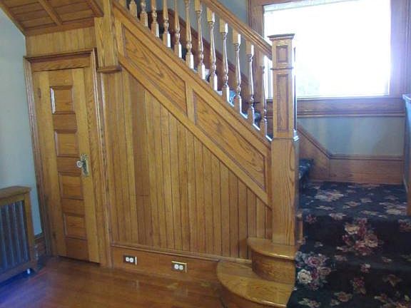 Nice older home, completely insulated, hardwood floors throughout, natural woodwork throughout. Small fenced yard,driveway with garage. Stainless steel appliances included. New plumbing throughout. Nice maple cabinets in kitchen. All room sizes approx.