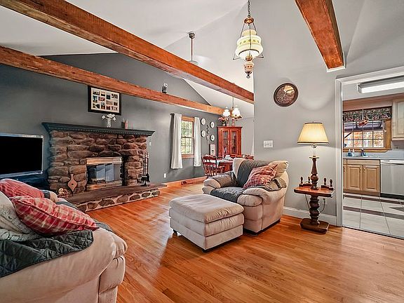 Great opportunity to own a wonderful 3 bedroom home in Naugatuck on the Middlebury line. Living room has great stone fireplace, wood beamed ceilings and hard wood floors. Open floor plan to dining room and kitchen. Kitchen is fully applianced with tile floor and loads of cabinet space. All bedrooms have wood floors and ceiling fans. Updated bathrooms and full finished basement with fireplace and kitchenette. Possibility for in-law set up or rec room. Detached 1 car garage and level lot. Rear and front decks are covered. A must see! Please contact owner directly at 475-559-9485
