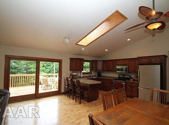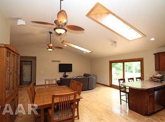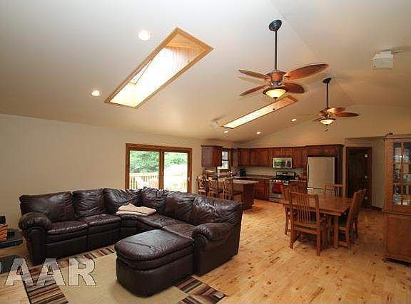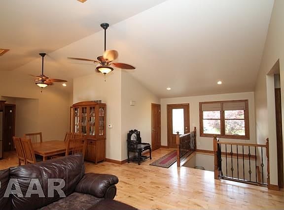 Awesome 4 BR/3.5 BA custom built ranch features great room with cathedral ceiling, skylights and maple hardwood floor. Amenities include oak trim, solid 6 panel doors and Andersen windows. Open floorplan with split bedroom design. Master suite includes cathedral ceiling, dual sinks & whirlpool. Convenient main floor laundry. Oversized garage has heated floor & 18x8 overhead door. Finished walkout basement to 24x13 patio. 3 level deck: 24x12 plus two 12x10. 7x8 utility shed with roll up door. Don't let this one pass you...BUY!