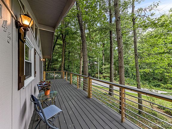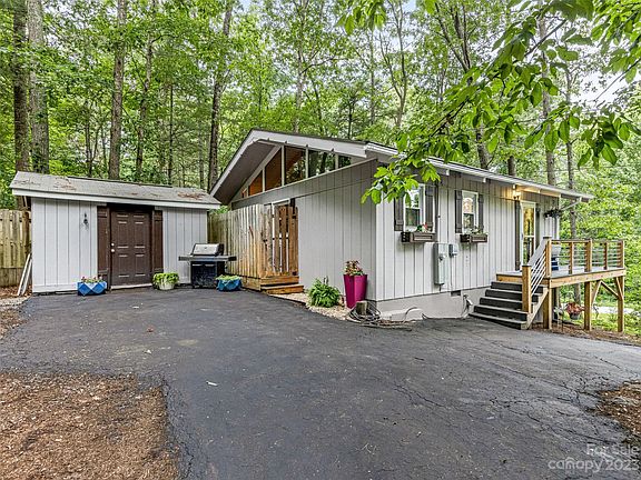 Nestled among the serene beauty of the mountains, this charming small home offers the perfect retreat for nature enthusiasts. The cozy interior features wood finishes, granite, timeless tile, exquisite lighting, a beautiful fireplace, with large windows and sliding doors that invite the outdoors in. The open-concept living space flows seamlessly into the kitchen, while the spacious composite wrap around deck allows you to savor morning coffee amidst mountain landscapes. The tranquil bedroom provides a peaceful escape and slips into the updated oasis bathroom while the surrounding trees and natural wonders of WNC promise endless adventures. Experience mountain living at its finest in this enchanting cottage retreat.