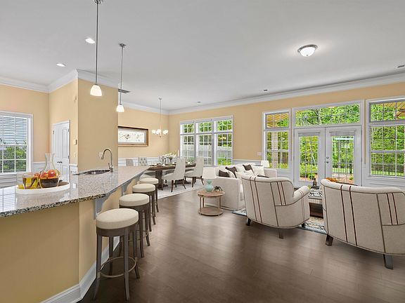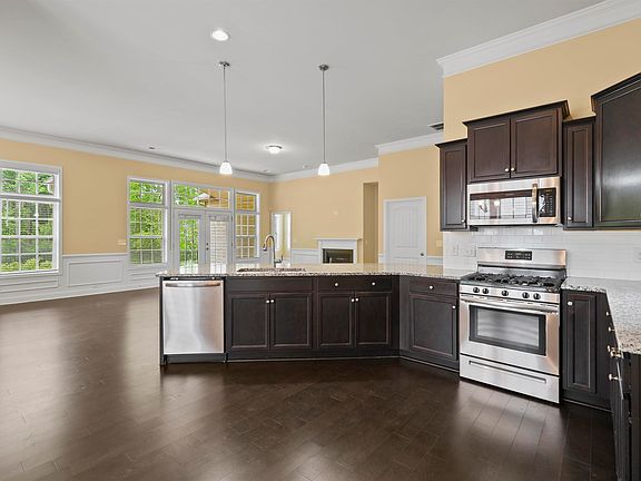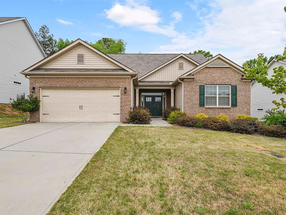 Nestled in Easley's Meadow Ridge Subdivision, 145 Wildflower Road offers over 2950+ square feet of luxurious living space. This meticulously crafted home features 4 bedrooms and 3.5 baths, plus a versatile 5th bedroom/bonus room that stands out from the rest. As you step inside, you're greeted by an inviting foyer and stunning deep brown wood floors that beautifully contrast with the delicate overlay wainscoting surrounding the entire first floor. The large open floor plan is flooded with natural light, thanks to double stacked tilt-out windows and stunning upgraded French doors leading out to the covered back patio and private wooded backyard. Imagine yourself on a bright spring day opening these beautiful doors and feeling a warm gentle breeze flow through the home. During the winter, take advantage of the French-inspired surround fireplace, which brings warmth and grounds the whole open living and dining area. The open kitchen is a chef's dream, offering stainless steel appliances, a 5-burner gas stove, extra wide stainless sink, and a large pantry. The high-top bar seating is perfect for entertaining, while the adjacent breakfast area provides a warm spot for casual dining. Convenience abounds with a walk-in laundry, half bath, and mudroom just off the kitchen. The main level primary bedroom is a retreat unto itself, featuring 10ft+ trey ceilings, and double doors leading into the primary bathroom complete with a walk-in shower, separate garden tub, dual vanities, and a large walk-in closet. Two guest bedrooms on the main floor share a full bath, while upstairs you'll find the fourth bedroom and the 23x16 fifth bedroom/bonus room. The bedroom room is adorned with floor-to-ceiling bookshelves and a window bench seat, creating the perfect spot for reading under warm sunlight. A full bath with dual sinks and granite countertops completes the upstairs living space. Step outside to the vaulted covered patio overlooking the newly fenced yard, where a garden blooms in spring and summer. The two-car electric garage features built-in storage shelves and a floored attic, providing ample storage space. CPI security equipment also conveys with the property. With its great floor plan, high-quality materials, and low maintenance living, 145 Wildflower Road offers the perfect blend of comfort and elegance.