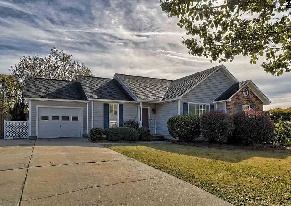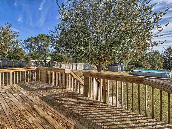 Beautiful 3 bedroom 2 bath open floor plan home in Lexington School District 1. Huge 1.78 acre lot that extends beyond the fence that includes walking trails as well as an above ground pool. living room has Hardwood flooring along with cathedral ceilings and French doors that enter into the eat in dining area. Tile flooring throughout the kitchen and dining area. Spacious, fully fenced in back yard with double gate access at the front as well as the rear. Large dog kennel with two storage sheds. This property won't last.