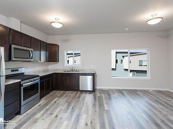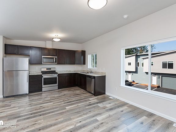 Modern townhouse style condo in Willow View Subdivision. Stainless steel appliances, gas range & open concept living room. Great location near JBER, Tikahtnu, shopping and restaurants. Two bedrooms on top floor w/kitchen, living room & full bathroom. One bedroom downstairs w/full bathroom and separate laundry. One car heated garage. Newer construction & ready to occupy on ASAP. Sorry, no pets.