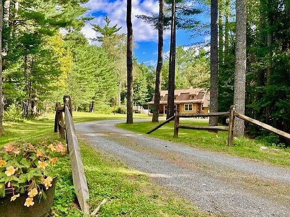 7+/- Acres Nestled at the end of a private, dead-end road, this 4 bedroom 2 bath, Real Log (out of Hartland Vt.) home offers a serene woodland retreat. First floor features a convenient primary bedroom and full bath, while the inviting wood fireplace adds visual charm and warmth to the living room with vaulted ceiling which looks to the private yard with deck, patio and gardens. A brand-new above-ground pool provides the perfect summer escape, and the covered porch, back deck, patio, and fire-pit create ideal spots for outdoor relaxation. Guests will come and not want to leave! After a day outdoors in the fresh air gathered on the deck and around the fire the evening will bring all smiles and stories of the day! If you are a hobbyist you'll love the direct entry 3-bay heated garage which also has a large versatile space upstairs, perfect for home office, hobby, exercise or in-law suite. Separate workshop/shed for all your tools and equipment too! The paved driveway and perennial gardens enhance the property's curb appeal. Direct access to the Coppermine Trails offers endless outdoor adventures, whether you're into hiking, cross-country skiing, or mountain biking. The full basement presents an opportunity for additional living space, and the home’s proximity to town ensures convenience without sacrificing tranquility. Just minutes to Franconia Notch and Cannon Mtn. Excellent schools, small welcoming community with like-minded people passionate about where they live.