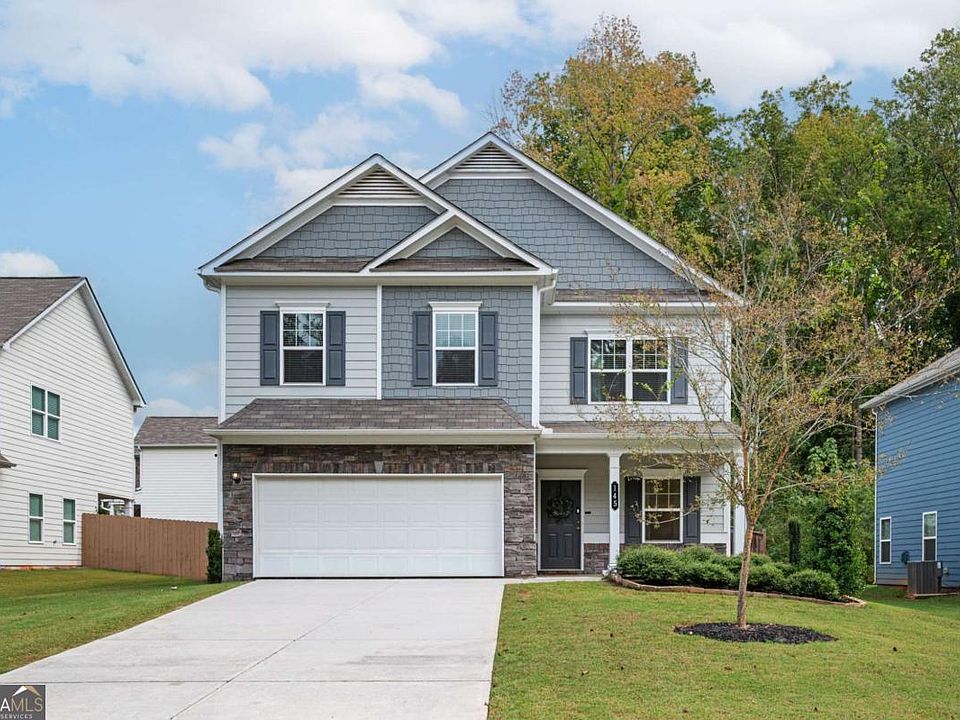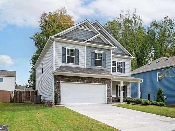 Welcome to this stunning Craftsman-style 4 bedroom, 2.5 bath home built in 2022, perfectly blending modern luxury with timeless design. Step inside to find a thoughtfully designed open floor plan filled with natural light and stylish finishes throughout. The main level showcases a spacious fireside family room that seamlessly connects to the kitchen and dining area, creating the perfect space for entertaining or relaxing with family. The beautifully appointed kitchen features quartz countertops, upgraded cabinetry, stainless steel appliances, and a large center island with breakfast bar seating. A convenient planning desk provides the ideal spot for staying organized, while the adjoining mudroom helps keep daily life tidy and functional. Upstairs, the huge second-story owner's suite is privately tucked away from the three secondary bedrooms, offering a peaceful retreat. The owner's suite includes a spacious en-suite bath with modern finishes, dual vanities, and a large walk-in closet. The additional bedrooms are generously sized, perfect for family, guests, or a home office. Outside, enjoy the expansive fully fenced backyard-ideal for outdoor gatherings, pets, or playtime-and relax under the covered patio for year-round enjoyment. A 2-car garage adds convenience and extra storage. Located just minutes from HWY 575, Lake Allatoona, Patriots Park and the Towne Lake area, this home combines modern craftsmanship with a prime location close to shopping, dining, and recreation. Move-in ready and full of upgrades-this one is a must-see!