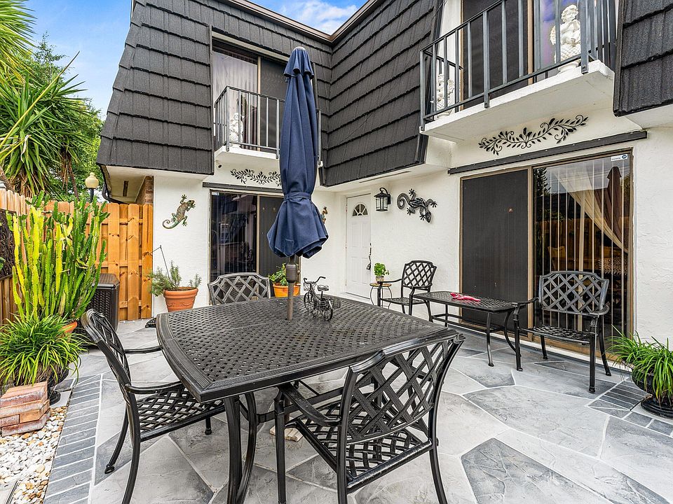 Welcome to this beautifully maintained and spacious 3BR/2.5BA townhome!Enjoy peace of mind with a new Aluminum roof, new AC, newer appliances, and a cozy gas fireplace. The inviting kitchen features stainless steel appliances and warm finishes that make cooking a delight.Upstairs, you'll find a primary suite and guest bedroom--each with its own private balcony--perfect for morning coffee or evening relaxation. All bathrooms include double sinks, with a convenient first-floor half bath and laundry room for added ease.Truly move-in ready, this home also offers a private patio and courtyard ideal for entertaining or quiet evenings outdoors. Ideally situated for both comfort and convenience, Perfectly positioned near schools, Palm Beach State College, the airport, and local hospital.