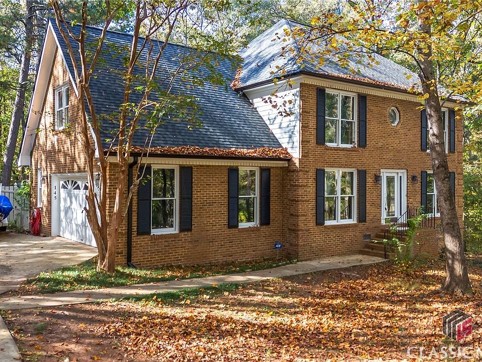Welcome to 145 Wyndfield Pl, a charming 4-bedroom, 2.5-bathroom home nestled in the desirable Wyndfield neighborhood. This residence boasts spacious bedrooms, including a primary suite complete with a custom closet system. The heart of the home features an eat-in kitchen and a separate dining room perfect for hosting gatherings of any size. Cozy up by the gas fireplace in the inviting living room, or enjoy a quiet evening in the den. With a private lot adorned with mature trees and a fenced-in backyard, you'll find plenty of space for outdoor enjoyment and relaxation. While this home might need some updates, it presents a fantastic opportunity for those seeking to personalize their living space. With a bit of vision and renovation, you can easily transform this house into your dream home, perfectly tailored to your unique style and preferences. Don't miss out on this chance to create the home you've always envisioned in a peaceful and established community.